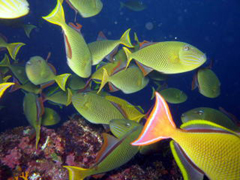 普段は泳いで行けない場所まで足を伸ばしカメやツバメウオの群れを見てきました。