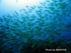 ホウライヒメジ、アカヒメジ、ツバメウオが群れ